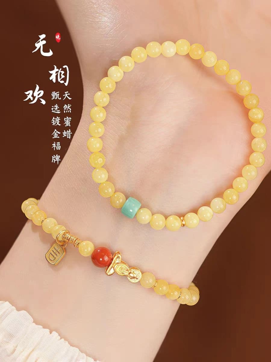 无相欢天然蜜蜡南红绿松石手串